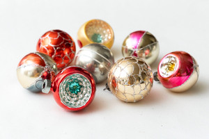 VTG Glass Ornaments Indents Balls Small 2 Inch Lot of 8