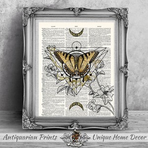 Death Moth printed on an antique dictionary book page, Unique home decor Poster