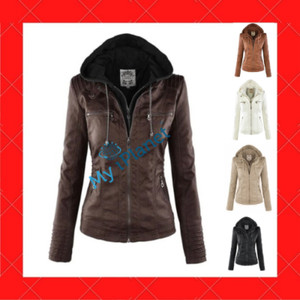 Europe Hot Removable Solid Leather Jacket Chaqueta De Cuero Moda Mujeres Sudader