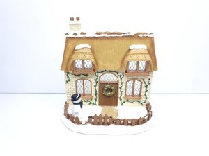 Vintage Snowy Cottage With Snowman Porcelain Tea Light Holder Christmas Ornament