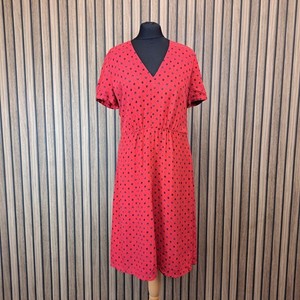 Jigsaw Dress Red Spotted UK 14 Flare Short Sleeve Knee Length