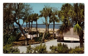 Vintage Fort DeSoto Park Florida Camping Postcard Palm Trees Beach