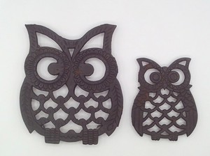 Set of 2 Vintage Cast Iron Trivets Owl Design 5 5/8" and 4" Long Made in Taiwan