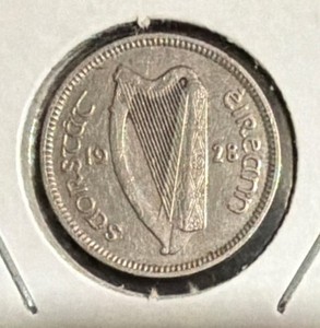 1928 Ireland 3 Pence Nickel Coin-17.6MM-Hare-Harp-KM#4