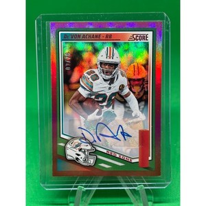 De'Von Achane Red Zone Auto /20 2025 Panini Score #123 Miami Dolphins