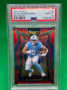 David Montgomery Red Prizm /99 PSA 10 2024 Panini Select Detroit Lions #45
