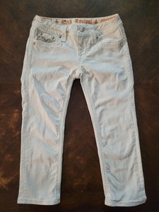 Rock Revival Katie Capri Jeans Womens Size 27 White Low Rise Gemstone Embelished