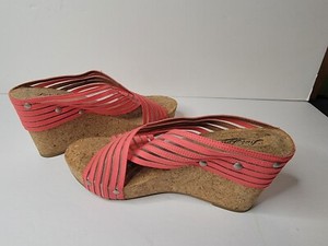 Lucky Brand Pink Wedges Open Toe Cork Bottom Women's Sandals Size 8M GUC