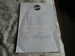 Leicester City v Middlesbrough Football League Cup Final Team Sheet 6/4/97