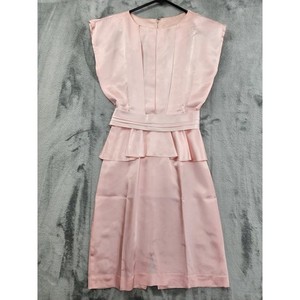 Vintage 80s ZUM ZUM Satin Jacquard Pleated Peplum Pencil Dress Size XXS Pink