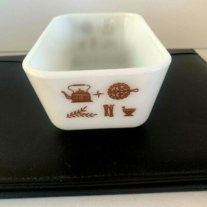 PYREX Vintage Early American White Brown Small Loaf Pan 1.5 Pint Oven Ware 0502