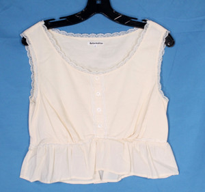 REFORMATION Ivory TWILL Lace Trim FAUX BUTTON Sleeveless CROPPED PEPLUM TOP Sz 4