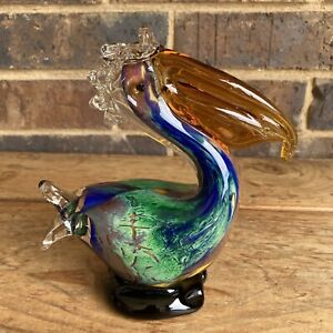 Multi Color Blown Art Glass Bird Pelican 6 5/8” Tall