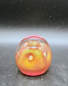 Vintage Alfredo Barbini (Attr) Murano Art Glass Paperweight Red Gold Inclusions