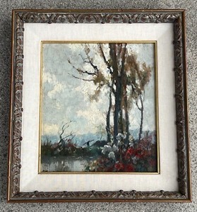George A. Boyle (UK, 1842-1930) "Landscape" Oil Painting on Panel. Signed