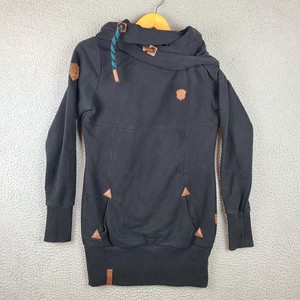 Naketano Long Large Pull On Hoodie Sweatshirt Black Pullover Brave New World