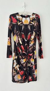 Ted Baker Dress Women's Patterned Stretch Knot Front Long Sleeve Wiggle Size 3