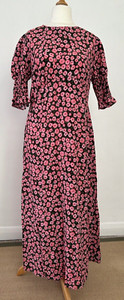Marks & Spencer Tea Dress Women’s Half Buttoned Black Floral SS Size 14