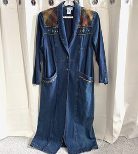 Vtg Nancy Bolen Womens Denim Trench Coat Size 16 USA Western Old Money 18469