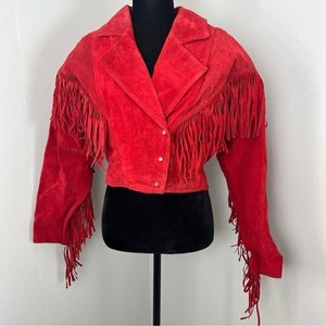 Bermans Fringe Red Leather Jacket Thinsulate Insulation Womens size Medium