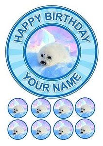 SEAL SEALS CAKE TOPPER ROUND EDIBLE ICED ICING FROSTING 7.5" + 8 CUPCAKE TOPPERS