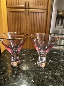 Vintage Martini Pink Blown Glass Gold Rim Solid Base 5 1/4" Set of 2