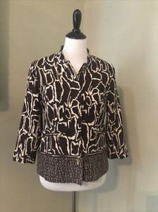 Black Label By Chicos Brown Tribal Printed Snap Front Jackets Size 0 Small