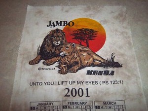 Vintage 2001 Cloth Kitchen Calendar Jambo Kenya Lighthouse for Christ Mission