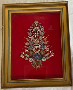Vtg Framed Costume Jewelry Christmas Tree OOAK Handcrafted Jewelry Art 19” x 15”
