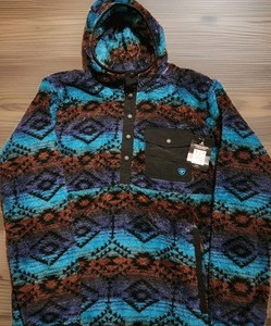 NWT Ariat Men's Polar Bear Fleece Hoodie Enamel Blue Serape Size L Large Aztec