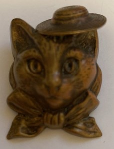 Brooch Cat Bow Hat Vintage Copper Unique Rare Find Collectable