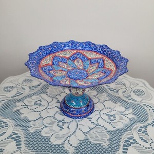Traditional Persian Minakari Pedestal Plate Catchall Trinket Dish Blue Statement