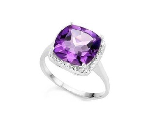4 1/3 Ct Purple Amethyst & Diamond Sterling Silver Ring 925 Floral Lavender