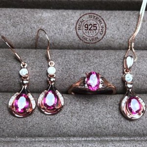 Imperial Pink Topaz Sterling Silver Jewelry Set 925 Ring Pendant & Earrings