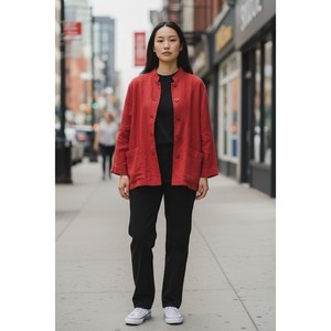 Liz Claiborne Woman Red Linen Mandarin Collar Button Front Jacket 1X