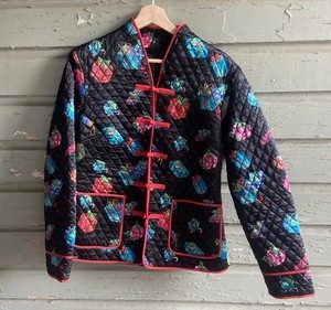 Christmas Anne Carson Silk Quilted Jacket, Size M Presents Black Red Holidays
