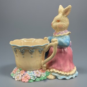 VTG Dept 56 Easter Bunny Teacup Ceramic Planter Candy Dish #