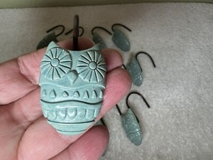 Owl Shower Curtain Hooks Teal Green Aqua Boho Resin Hangers Set of 12