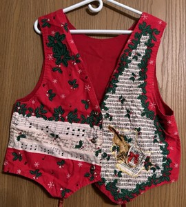Vest Red Green Ugly Contest Button Up Holiday Christmas Handmade Womens VTG