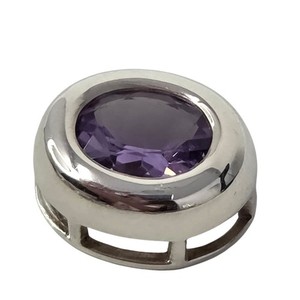 Sterling Silver Oval Amethyst Bezel Set Pendant Slide Thailand 5/8"x1/2"