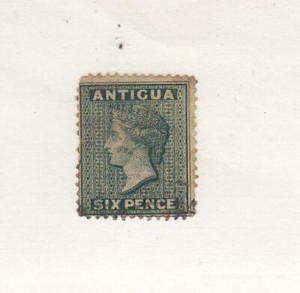 ANTIGUA (MK7640) # 11 F-USED 6p 1876 QUEEN VICTORIA /BLUE-GREEN CV $20