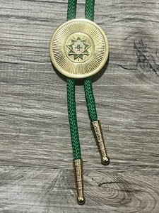 VINTAGE MASONIC ROYAL ORDER OF SCOTLAND BOLO TIE W/BOX GOLD TONE GREEN CORD