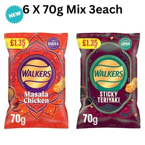 Walkers Masala Chicken & Sticky Teriyaki Flavour Sharing Crisps 6 x 70g(3 each)