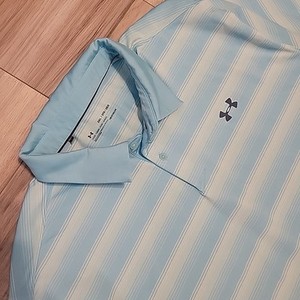 Under Armour HeatGear Polo Shirt Men XXL Light Blue Striped Short Sleeve Stretch