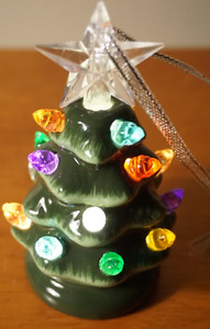 Mini Vintage Retro Style Ceramic Light Up Christmas Tree Ornament Green