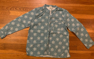 Garnet Hill Cotton Flannel Pajama Shirt SNOWFLAKE TOP womens blue white pjs XS