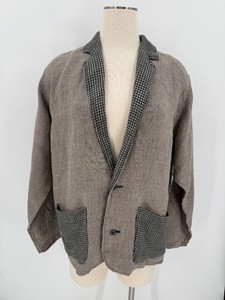 FLAX Womens Linen Tan Houndstooth Collared Blazer Jacket Size XL Lagenlook Retro