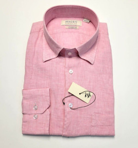 Hagen NEW Classic Fit 100% LINEN Button Sport Shirt Men's LARGE L Pink Woven