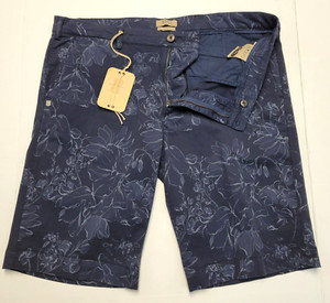 New 40WEFT Chino Shorts Men's 38 XL EU 54 Navy Blue FLORAL Cotton Stretch $155