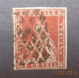 italy22,italy stamp Tuscany Scott 4a, F-VF used, Cat. $180.00